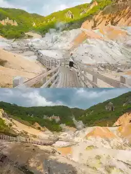 hot springs in Noboribetsu. The eruption of Mount Kuttara created a fissure with a diameter of approximately