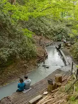 This stream flows from Mount Oyunuma. It's a milky white stream with a temperature of