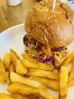 In a restaurant where the warmth of wood could be felt, I enjoyed a hearty hamburger 🍔