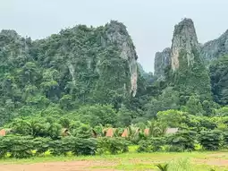 This tourist village is nestled amidst a long line of limestone mountains, offering stunning views. There's also a bat cave, offering a peaceful atmosphere. There's also a cafe, waterfall, activities, and plenty of accommodations. 🌿🌳