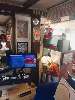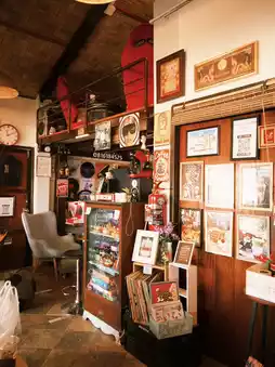 A chill riverside cafe on the Mekong River, reminiscent of "hanging at a friend's house" with a 90s-vintage vibe. 🎶 The interior is warmly decorated, and there are fun retro games to play. Plus, there's a cute promotion: buy 150 baht and get coins to play claw machines. 🧸✨