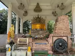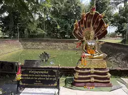 This ancient temple houses a Naga statue and replicas of important sites related to the Buddha, the most complete of which still exist. It also features the Mucalinda Pond (sacred pond) from which water is used in various important national ceremonies, such as the Phiphat Satya Water Ceremony. Women are prohibited from entering this pond; worship is permitted only from above.