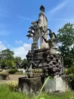 This complex is filled with over 200 large, unusual reinforced concrete statues, each towering and imposing. These statues were created out of the faith and belief of Grandfather Boonlue Sureerat, or Grandfather Lue, that all religions can coexist. He intended the Deva Park, or Sala Kaew Ku, also known locally as Wat Khaek, to represent a place of liberation from all defilements.