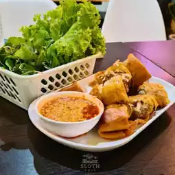 🤩 We recommend Muatad Cafe's fried spring rolls in Nong Khai. They are crispy on the outside and soft on the inside. The filling is packed with glass noodles, minced pork, and fresh vegetables. They are fried until golden brown and look delicious. They are served with a delicious dipping sauce that is perfectly balanced between sweet, sour, and spicy. This is a snack that is so delicious that you can't stop eating it. If you come to Nong Khai, don't miss out on stopping by!