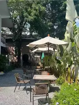 This Nong Khai cafe, inspired by art students, is a beautiful cafe with a unique twist. It's a cool and beautiful place! 😍 They offer both food and drinks, making it a great place to take your family for lunch or dinner.