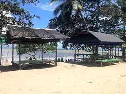 The beach boasts soft white sand and crystal-clear waters, perfect for swimming and snorkeling.