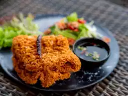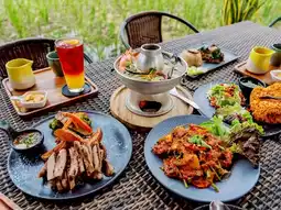 The restaurant is surrounded by rice fields, with both air-conditioned and outdoor areas. There are ducks strolling around, a pond for feeding fish, and a charming natural setting. Immerse yourself in nature without having to travel far to the provinces. It's right here in Rama 5, Nonthaburi.