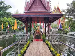 🎈Wat Chomphuwek, an ancient temple in Nonthaburi Province, was built during the reign of King Narai the Great during the Ayutthaya period, around 1682-1757, by Mon refugees from the Mon Kingdom. Situated on a high hill, the temple is peaceful, hence the name Wat Chomphuwiwek. Inside the temple is the old Ubosot, a Maha Udom-style Ubosot (ordination hall), with only one door. Inside, beautiful paintings by Nonthaburi artists from the mid-Ayutthaya period feature the image of the Earth Goddess squeezing her hair, considered the most beautiful in the world. Wat Chomphuwek also houses several other important landmarks, including the Mutao Chedi, the new Ubosot, the Phra Maha Chakkraphat Wihan, the Phra Phutthabat Wihan, and the Earth Goddess squeezing her hair. If you're visiting Nonthaburi Province, Visit an important ancient temple in Nonthaburi Province. See the old ubosot (ordination hall) at Wat Chomphuwek.