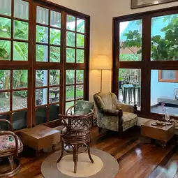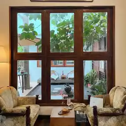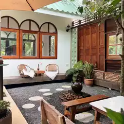𓂃 A newly opened home cafe, this garden cafe offers a delightful atmosphere, surrounded by trees and flowers. The garden itself is truly a banana plantation, offering both indoor and outdoor seating. 🌳🪵