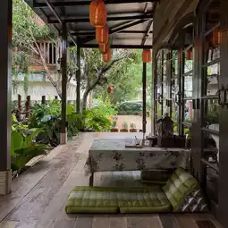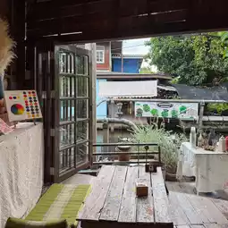This is a cafe housed in a traditional Thai house with a wonderfully shady atmosphere. The house has a unique and beautiful design. Located in the alley next to Water Treatment Plant 4 (Khlong Maha Sawat), Plai Bang Subdistrict, Bang Kruai District, Nonthaburi Province, this cafe is perfect for a relaxing getaway. They also offer a "craft" corner, offering creative activities like painting frames/plant pots or drawing. They also offer food, drinks, coffee, non-coffee, and bakery items.