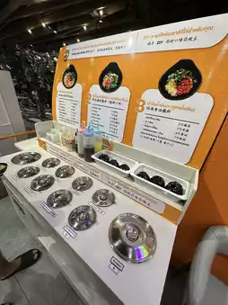 The highlight is that you can pick your own ingredients. There's a huge selection of pork, beef, chicken, meatballs, tofu, mushrooms, fresh vegetables, and various types of noodles, and have them weighed for just 49 baht per kilo. It's a fantastic value! ❤️
