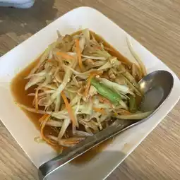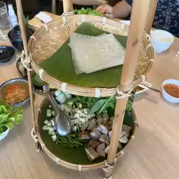 "Krua Muang Hue" Restaurant is a Lao-Vietnamese restaurant that serves Lao and Vietnamese food. The atmosphere in the restaurant is very good. There are many seats and trees in the middle of the restaurant. The food we ordered was Somtam Luang Prabang, Kuay jap, Tam Thai, Tom Saep, and Nem Nuang. What impressed us the most was that we could refill vegetables as much as we wanted. The restaurant has many branches. Choose the branch closest to your home.