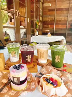 • The cafe is located in a classic Thai house, beautifully decorated with a blend of Thai and modern influences. The open-air setting by the canal creates a cool, comfortable, and peaceful atmosphere, perfect for a truly relaxing retreat.