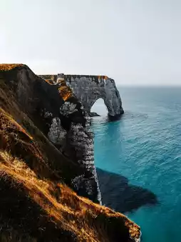 At dusk, the setting sun paints the cliffs and sea a warm golden color, stretching to the cliff edge. The sea breeze caresses the waves, crashing against the rocky shore, as if time has slowed down. Truly breathtaking, it's after nightfall, when the sea and cliffs intertwine beneath the starlight. The entire Normandy County Cliffs whispers of the ocean's power, the cliffs' aloofness, and the eternal beauty of nature.