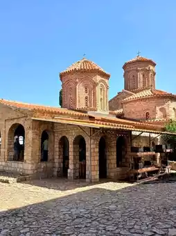 • Ohrid Old Town 🏘️ – narrow cobbled streets, St. John at Kaneo Church, Plaošnik, and traditional architecture