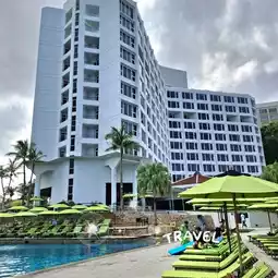 🏖🏖The hotel is located on the road along Pattaya Beach, North Pattaya. You can walk out to play on the beach. Or if you want to play in the water, the hotel has a large swimming pool divided into several zones: a children's zone, an adult zone. There is also water sports equipment. You can climb the cliff by the pool or lie down and relax by the pool. There are colorful hammocks around the pool.