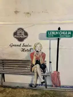 I stumbled upon this charming spot—Swiss Hotel Georgetown—a hidden gem with a playful touch. The exterior is decorated with cute paintings mimicking Mr. Bean, Marilyn Monroe, and other prominent figures, adding a fun and quirky vibe. The hotel itself is cozy and inviting, making it a unique stay in Penang. If you appreciate creative details and a bit of character, this place is definitely worth checking out!