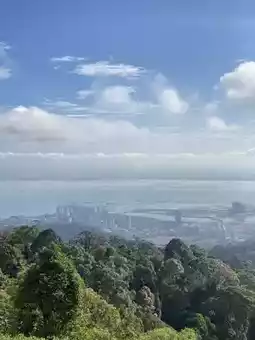 When you reach the top, it's so refreshing because there are a lot of trees, the air is cool and comfortable, it feels like you're going up to take a deep breath of ozone. The view from the highest point can see the entire city of Penang, but that day there was a lot of fog, so the view wasn't very clear (but it gave a different kind of mysterious feeling).