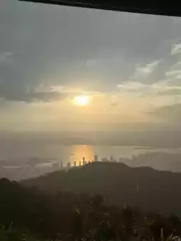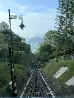 One of Penang's must-see highlights is Penang Hill. I recommend arriving either early in the morning or late in the evening. We arrived around 6:40 AM. The morning air was cool and refreshing, even a little chilly. It's a great place to take a leisurely stroll. It's quite spacious, and there's a tram that you can take around if you don't like walking. There are also restaurants and cafes up there, but it doesn't seem to be open much in the morning.
