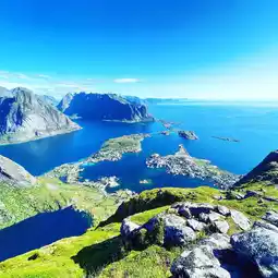 #holidayitinerary Hiking Reinebringen in Nordland is an experience that stays with you long after the climb. The trail is a bit demanding, with a steady set of stone steps leading you up the mountain, but the reward at the top makes every step worth it. Once you reach the viewpoint, the panorama over Reine, the surrounding fjords, and the sharp mountain peaks is absolutely breathtaking. It feels like standing on top of a natural masterpiece, with turquoise waters and colorful fishing huts dotting the landscape far below.