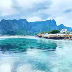 #holidayitinerary Sakrisøy in Nordland is a tiny gem in the Lofoten Islands that feels almost unreal when you first arrive. The small island is surrounded by turquoise waters that look more like the Caribbean than northern Norway, and the bright yellow fishing cabins give it a unique charm. Walking around, you can enjoy the peaceful atmosphere, the sound of the sea, and incredible views of the dramatic peaks that rise sharply from the water.