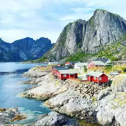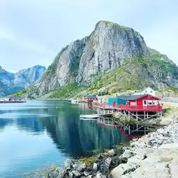 #holidayitinerary Hamnøy in Nordland is one of the most photographed villages in the Lofoten Islands, and it is easy to see why. The tiny fishing village sits against a backdrop of steep mountains and crystal clear waters, creating views that look straight out of a painting. The red rorbuer cabins by the water add to its charm and give a glimpse into traditional Norwegian fishing life.