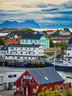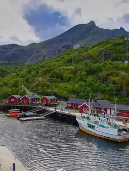 📍Stay in the unique fishing village of Nusfjord and book dinner at a restaurant on the pier. Lonely Planet hailed it as "one of Norway's most beautiful fishing villages." The village retains the famous red or yellow Rorbuer (fishermen's huts) built on stilts and jutting out to sea. This stay is highly recommended. Another benefit is that there are fewer tourists during the evening and early morning hours.