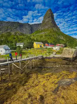 📍Visit Lofoten's "Golden Triangle" of Hamnoy, Sakrisoy, and Reine: Starting in Hamnoy, Lofoten's most famous scenic spot, take a photo of the iconic red fisherman's huts against the towering mountains from the bridge. The town is walkable, but smaller than expected and not as elaborate as other fishing villages.