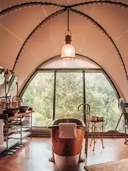 🔹Unique tent design with a colonial expedition style; 36 tents in total, including 28 cocoon-shaped tents and 8 family tents, some with private pools