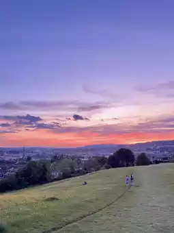 (Caught a glimpse of a fairy-tale couple strolling on the hilltop at sunset, with the Nottingham city skyline in the background, super romantic!💑)
