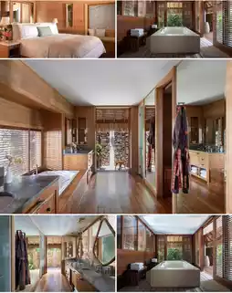Each overwater villa comes with its own "private ocean" – just step down the ladder into the clear waters whenever the mood strikes 🌊 Warm, sophisticated wood interiors and floor-to-ceiling windows frame the sea like living art. Watch sunsets from bed while listening to the waves for ultimate island relaxation!