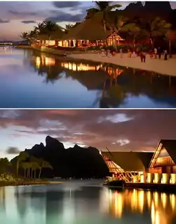 Perched on a crystal-clear lagoon, the overwater bungalows are poetically arranged against the backdrop of majestic volcanic islands 🌋 Wake up to waters so blue they look like spilled paint, snorkel with tropical fish, and breathe in the liberating ocean breeze~