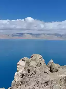When you first see Tangra Yumco, you will be amazed by its beauty. The lake is as blue as a sapphire, shimmering under the sunlight. The winding shoreline and the surrounding rolling mountains complement each other, creating a magnificent landscape painting. In the distance, the snow-capped peaks of the Nyenchen Tanglha Mountains rise into the clouds, and the snow on the mountain tops never melts, making them look especially sacred against the blue sky.