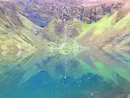 - **Color-Changing Waters:** The lake shifts between deep blue and turquoise hues, with a crescent-shaped island adding mystery.