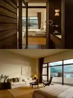 ▪️Surrounded by peach trees, the floor-to-ceiling windows face the snow-capped mountains. When you are awakened by the sunshine in the early morning, the peach blossom branches beside your pillow and the snow lines of the distant mountains are intertwined in the morning mist, and you seem to fall into the scroll of "A Thousand Miles of Rivers and Mountains".