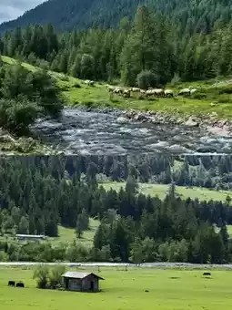2️⃣ Zhaxigang Village: Tibetan wooden houses + prayer flags + herds of cattle and sheep, a top choice for cultural shots