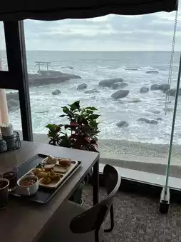 * The buffet breakfast is generous, with a wide variety of delicious dishes, and I easily overeat. The restaurant faces the sea, and you can see the torii gate on the rocks. The view is impeccable.