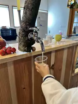 At a cafe where you can taste seasonal fruits, apple juice comes out of the tap⁉️