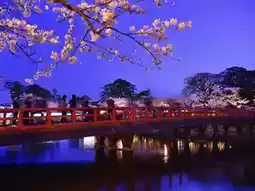 At night, the cherry blossoms are illuminated, offering a different kind of beauty compared to the daytime. Highly recommended! ☺️