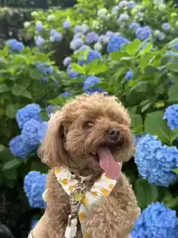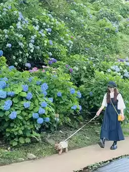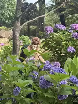 Now is the perfect time to visit! A hydrangea spot where you can bring your dog!