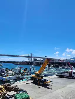 If you're visiting Odawara and want to experience the local fishing lifestyle, you must stop by "Hayakawa Fishing Port." 🚤 This historic port is lined with fishing boats. The tranquil atmosphere offers a panoramic view of the sea, with a giant bridge in the background, contrasting with the sky. It's so beautiful you'll want to stop and take photos from every angle. 📸