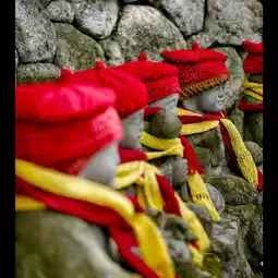 Stone frogs of various sizes stand on both sides of the approach to the temple. Some hold gold coins, some carry money bags, and there is even a "Zen frog" wearing a bamboo hat. You can discover new surprises every few steps! The giant "five-yen gold coin" in front of the main hall is a must-see spot. The Japanese word "five-yen" is homophonic with "御缘". It is said that touching the frog relief on the copper coin can attract wealth and good luck. Remember to put your hands together and make a specific wish~