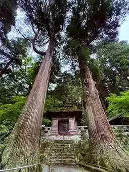 In the area, there are the Husband and Wife Cedar Trees of Honogu Shrine, with trunk circumferences of 6.4m and 5.7m respectively, and an estimated age of 700 years. They are designated as a natural monument of Oguni Town. Kengoku Ryu-no-Mikoto and Bime-mikoto are the main deities enshrined.