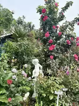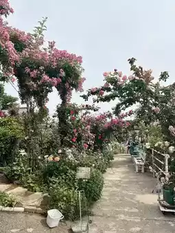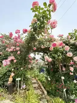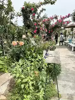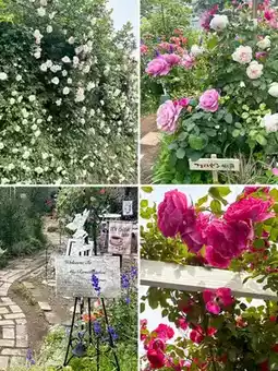 Various types of roses bloom in abundance, and nameplates are placed to identify each variety. You can take your time to enjoy a moment surrounded by roses โญ๏ธ.
