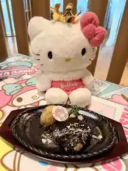 "Hello Kitty" The menu is packed with adorable treats, including "Tea's Pizza-Style Hot Sandwich" ❤️