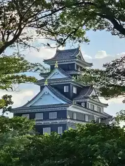 The city is also known for the legend of Momotaro, the Peach Boy, a local hero whose story is told through statues, souvenirs, and museum displays around town.