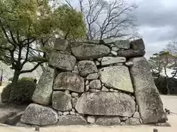 The stone walls at the entrance of the main keep (Honmaru) are built with massive stones, symbolizing the authority and power of the castle lord.