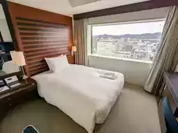 The lobby is high and brightly lit. You can check in at 2 pm and check out at 12 noon the next day. It is very kind. Each room is on a high floor, with no obstructions in front, behind, or on the left and right. You can easily overlook the city scenery of the sunny country. The room space is quite large, and it is no problem for one person to live in and spread out two suitcases. The amenities are complete. Although the bathroom does not have a dry and wet separation, there is a bathtub for bathing. There is a convenience store on the first floor, many restaurants around, and an airport bus to Okayama Momotaro Airport is opposite the hotel. The breakfast is rich, with many types and drinks. Compared with ANA hotels in other cities, the price is much more affordable.