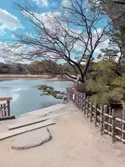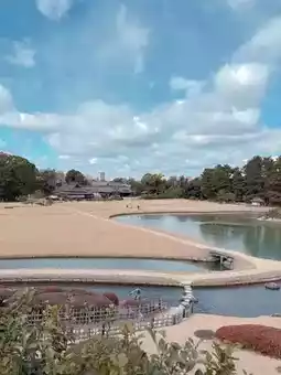 "Okayama Backland" uses an open landscape design, the four seasons change with different views, spring cherry blossom viewing🌸, summer green, autumn maple red, winter snow scenery, each with different charms, the park has a pond, small river, curved bridge, tea house and crane group, creating a quiet and elegant Japanese garden, worth visiting and taking pictures📸.