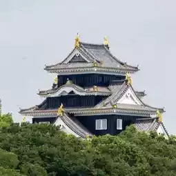 During the day, Okayama Castle reveals its deep gray-black stone walls, standing as a steadfast presence weathered by time. Without the embellishment of lights, the castle's quiet texture and historical aura speak for themselves.